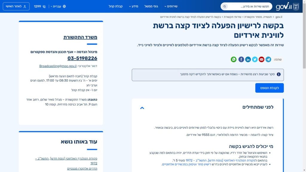 כל אלו הם פרטי הבקשה המרכזיים בטופס, הנדרשים למילוי על מנת להגיש את הבקשה לרישיון הפעלה לציוד קצה ברשת אירידיום.
