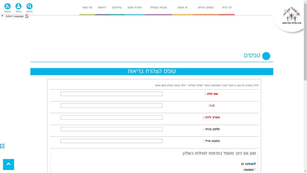 טופס הצהרת בריאות חלופה נגישה - כרגע לא קיימת.