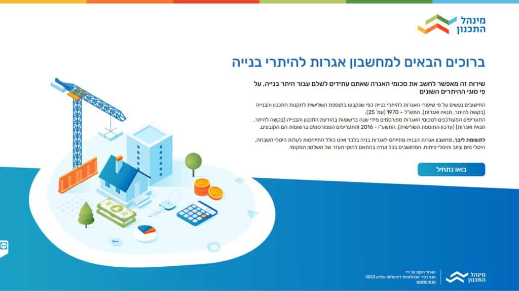 טופס קל » יחידות ממשלתיות » מינהל התיכנון » טופס מחשבון אגרות להיתרי בנייה