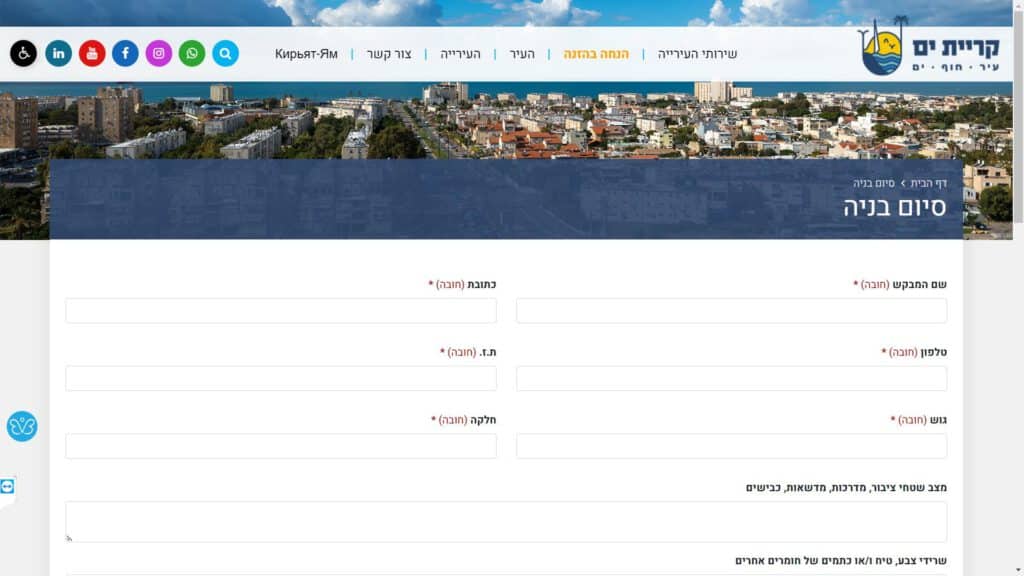 גוף שיתמוך בשאלות על טופס סיום בניה