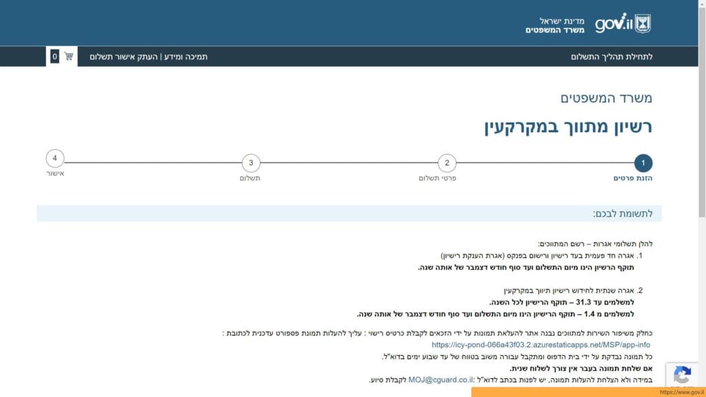 צילום מסך טופס אגרת חידוש שנתית לרישיון תיווך במקרקעין טופס מקוון