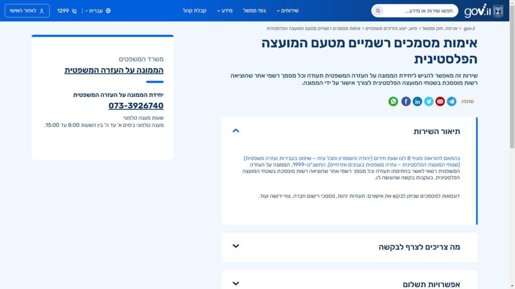 טופס קל » משרדים ממשלתיים » משרד המשפטים » טופס אימות מסמכים רשמיים מטעם המועצה הפלסטינית