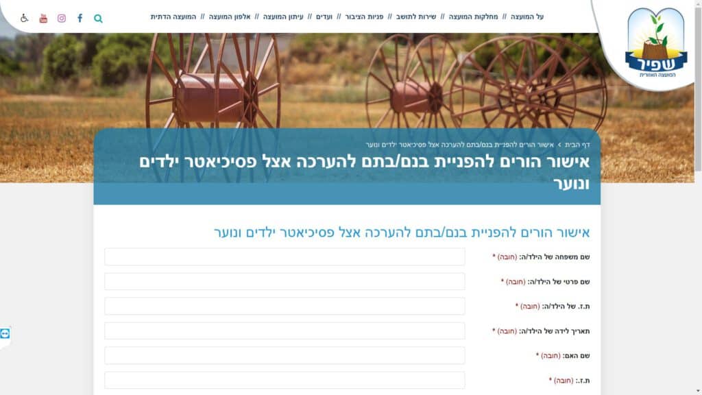 טופס אישור הורים להפניית בנם / בתם להערכה אצל פסיכיאטר ילדים ונוער חלופה נגישה - כרגע לא קיימת.