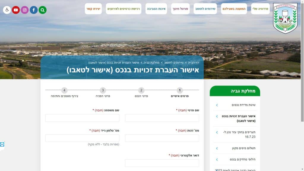 צילום מסך טופס אישור העברת זכויות בנכס (אישור לטאבו) טופס מקוון