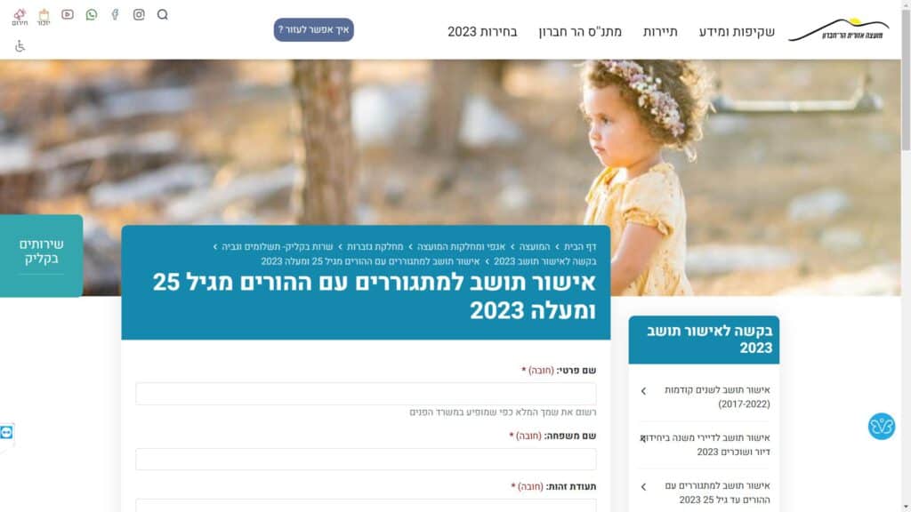 גוף שיתמוך בשאלות על טופס אישור תושב למתגוררים עם ההורים מגיל 25 ומעלה 2023