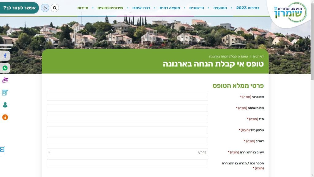 צילום מסך טופס אי קבלת הנחה בארנונה טופס מקוון