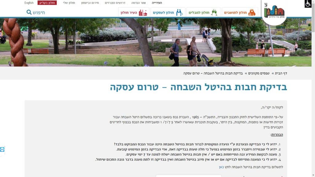 טופס בדיקת חבות בהיטל השבחה - טרום עסקה חלופה נגישה - כרגע לא קיימת.