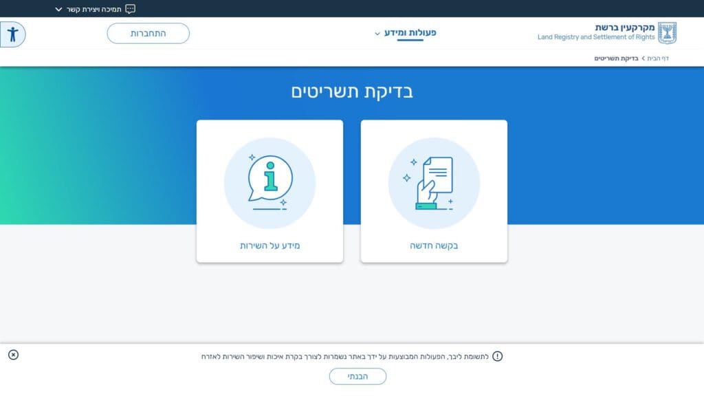 צילום מסך טופס בדיקת תשריט בית משותף לעורכי תשריטים טופס מקוון
