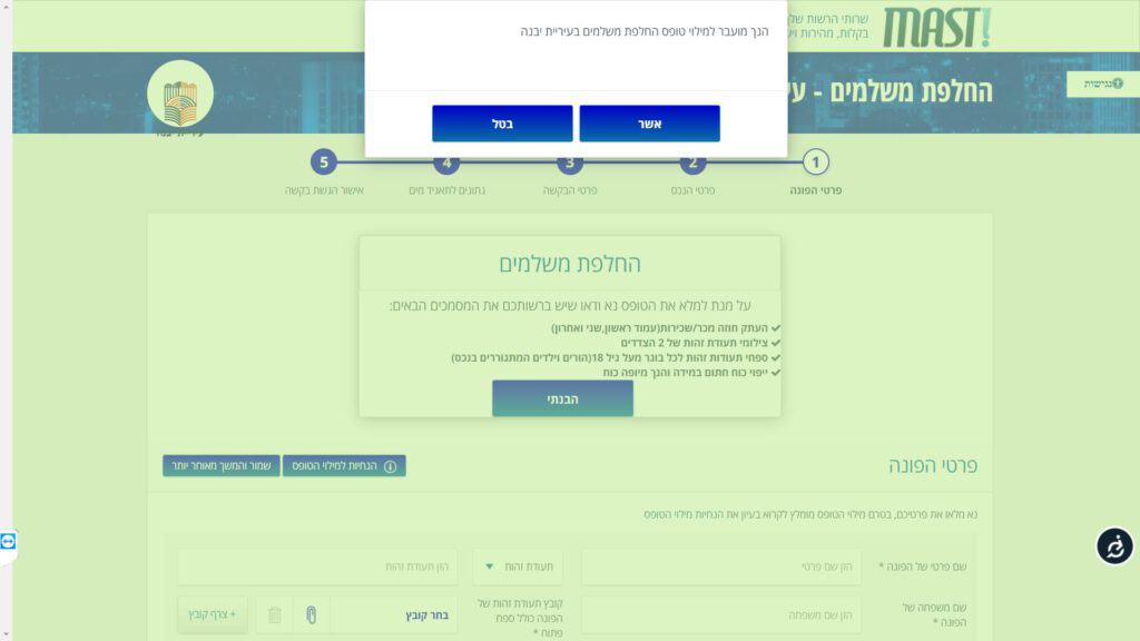 טופס קל » עיריות » עיריות בדרום » עיריית יבנה » כללי » טופס ביצוע שינוי מחזיקים