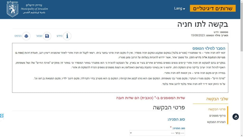 טופס בקשה לאישור חניה אזורי חלופה נגישה - כרגע לא קיימת.
