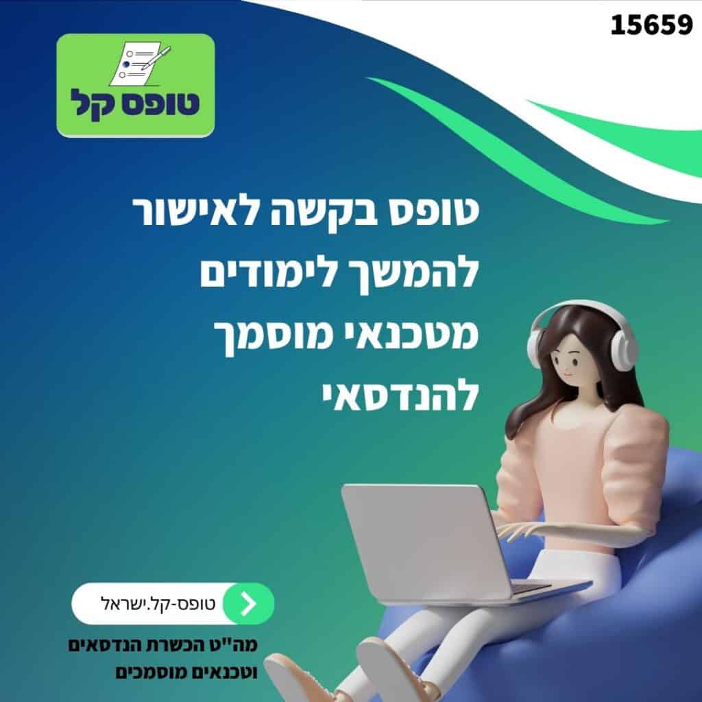 שם הטופס: בקשה לאישור להמשך לימודים מטכנאי מוסמך להנדסאי.