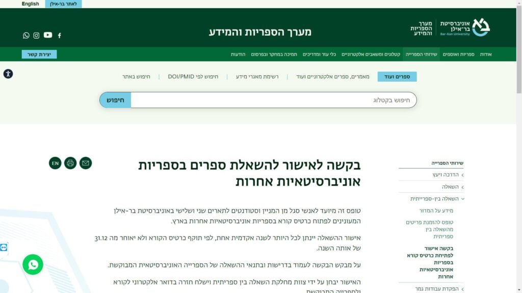 גוף שיתמוך בשאלות על טופס בקשה לאישור להשאלת ספרים בספריות אוניברסיטאיות אחרות