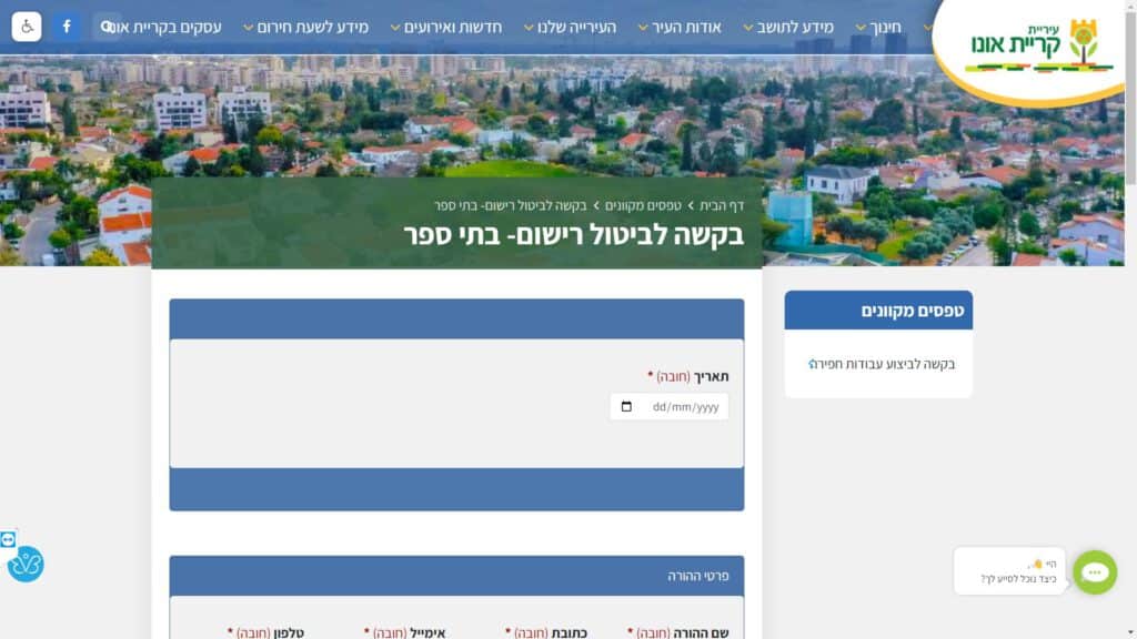 טופס קל » עיריות » עיריות בתל אביב והמרכז » עיריית קריית אונו » חינוך » טופס בקשה לביטול רישום – בתי ספר