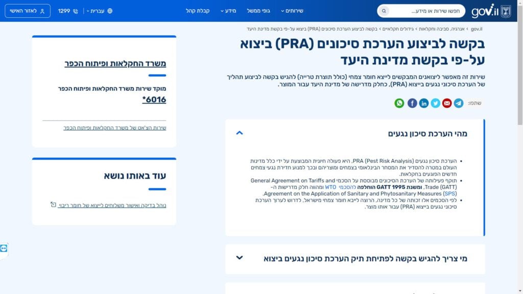 טופס קל » משרדים ממשלתיים » משרד החקלאות ופיתוח הכפר » טופס בקשה לביצוע הערכת סיכונים (PRA) ביצוא על – פי בקשת מדינת היעד