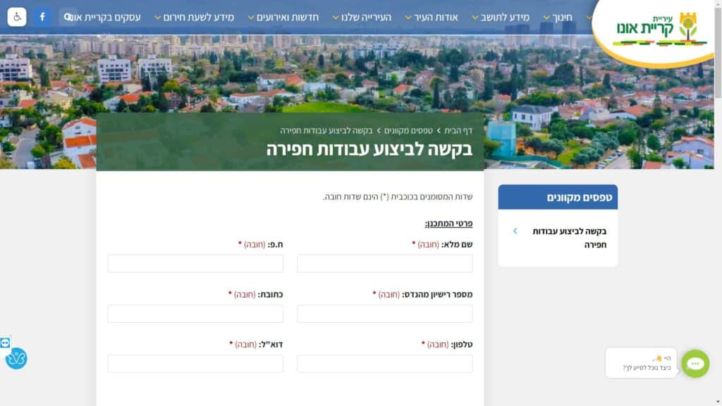טופס בקשה לביצוע עבודות חפירה חלופה נגישה - כרגע לא קיימת.