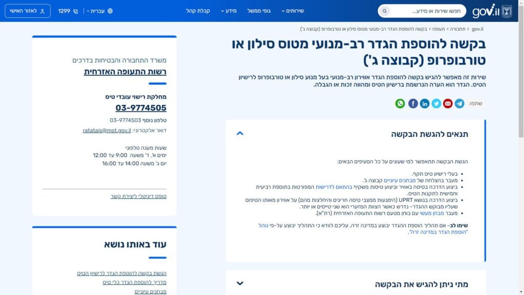 מטרה: מטרת הטופס היא לבקש אישור להוספת הגדר רב-מנועי מטוס סילון או טורבופרופ לרישיון עובד טיס בישראל, וזאת לאחר סיום קורס הסמכה שנערך במדינה חברה.