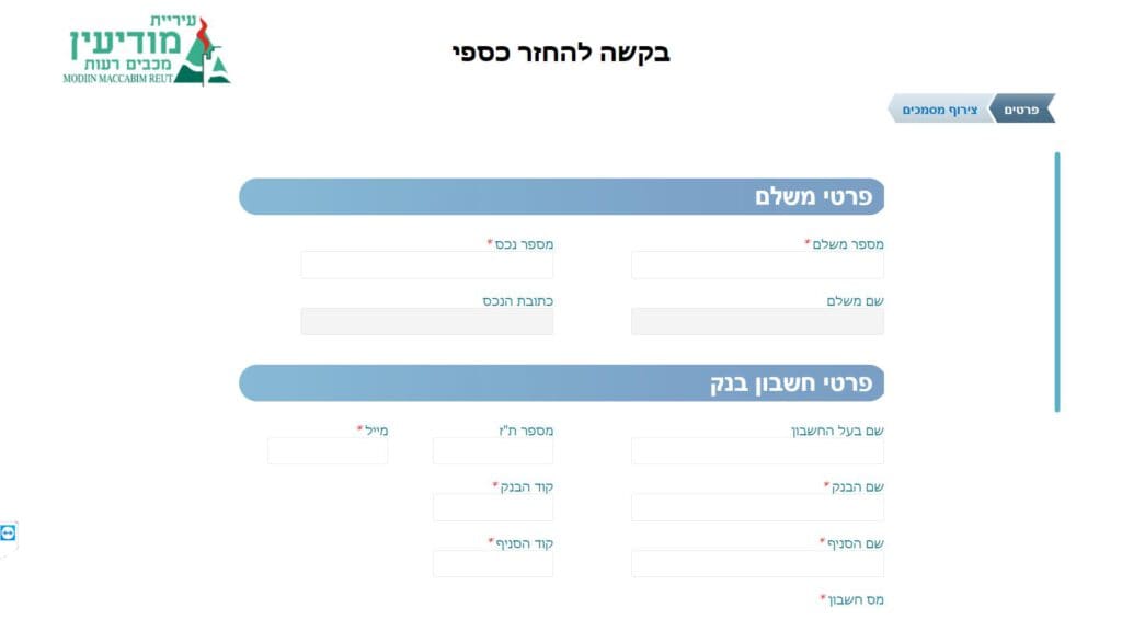 צילום מסך טופס בקשה להחזר כספי טופס מקוון