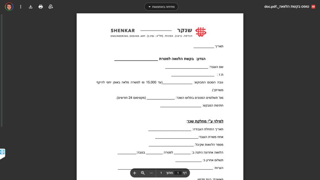 טופס בקשה להלוואה להורדה והדפסה - כרגע לא קיים טופס PDF.