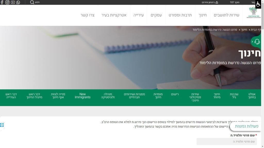 גוף שיתמוך בשאלות על טופס בקשה להנגשה נדרשת במוסדות הלימוד