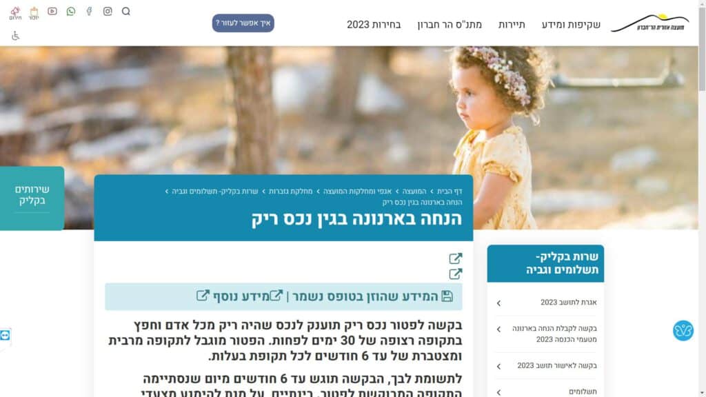 טופס בקשה להנחה בארנונה בגין נכס ריק חלופה נגישה - כרגע לא קיימת.