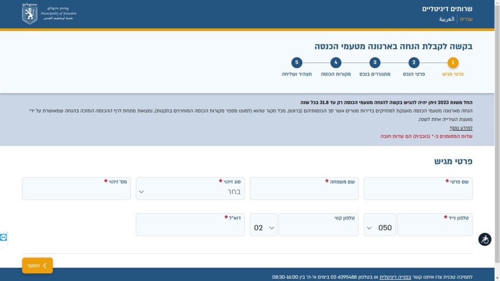 טופס בקשה להנחה מטעמי הכנסה חלופה נגישה - כרגע לא קיימת.