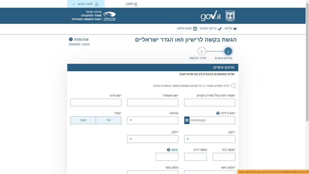 טופס קל » משרדים ממשלתיים » משרד התחבורה והבטיחות בדרכים » טופס בקשה להנפקת רישיון טיס על ג'ירופלן