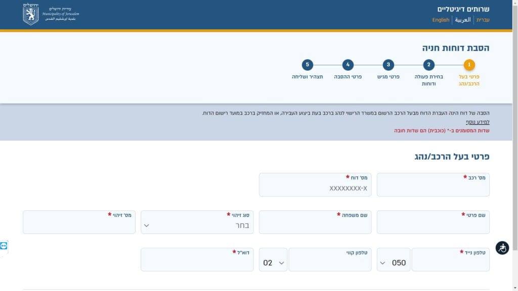 טופס קל » עיריות » עיריות בירושלים והסביבה » עיריית ירושלים » טופס בקשה להסבת דוח חניה / דוח נתיב תחבורה ציבורית