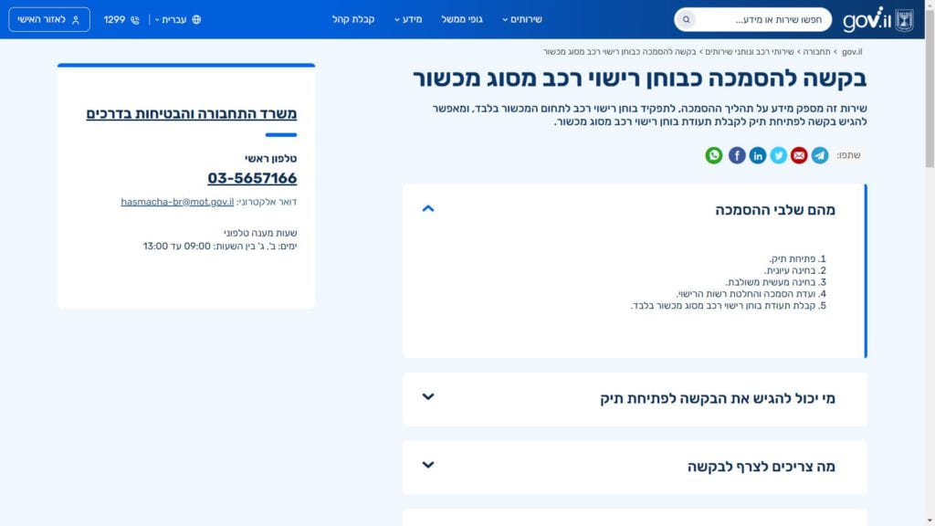טופס: בקשה להסמכה כבוחן רישוי רכב מסוג מכשור