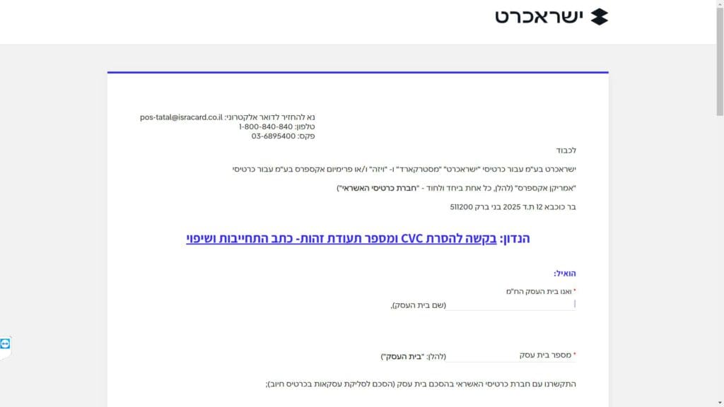 גוף שיתמוך בשאלות על טופס בקשה להסרת CVC ו / או מס' תז
