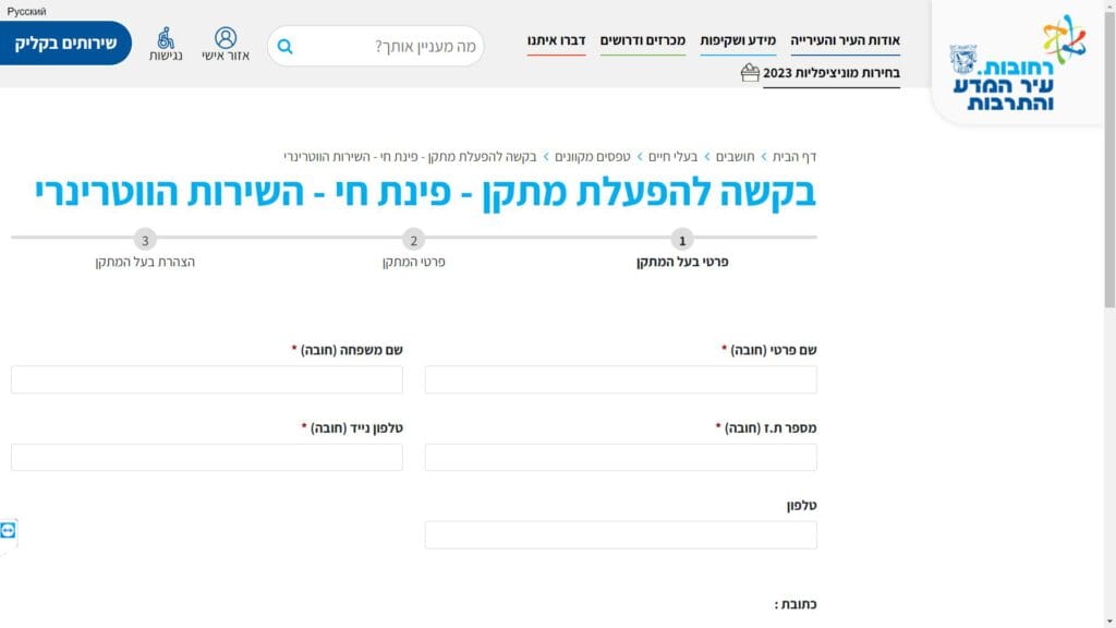 טופס קל » עיריות » עיריות בשפלה » עיריית רחובות » בעלי חיים » טופס בקשה להפעלת מתקן – פינת חי – השירות הווטרינרי