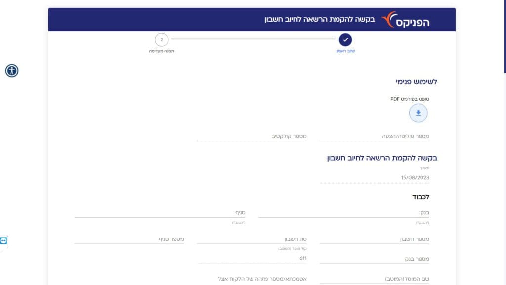 טופס בקשה להקמת הרשאה לחיוב חשבון - הפניקס פנסיה חלופה נגישה - כרגע לא קיימת.