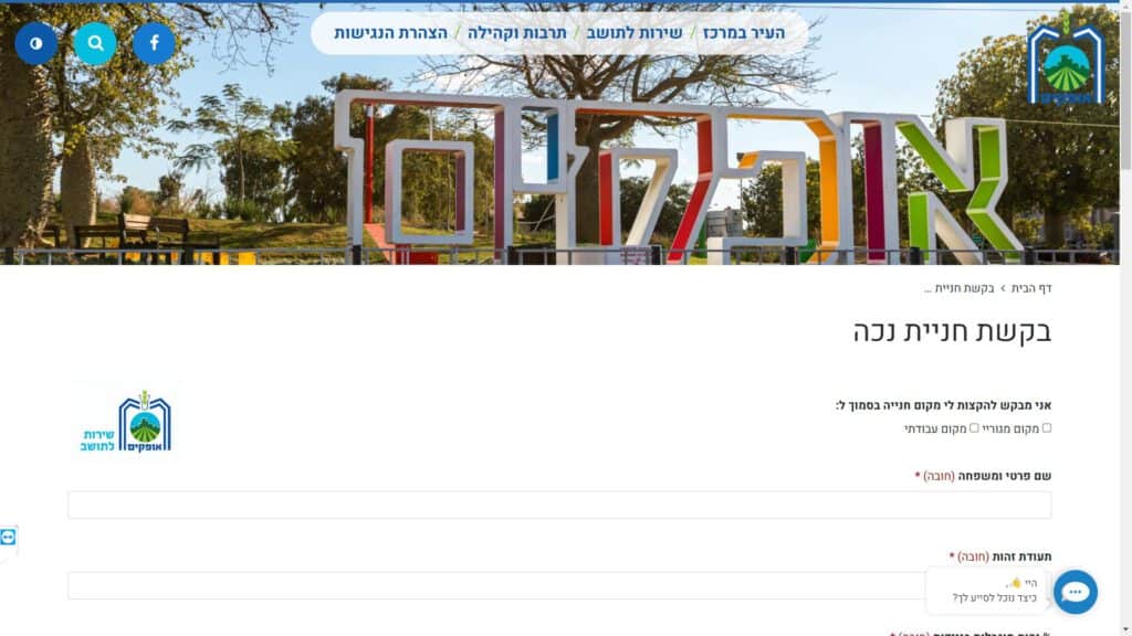 שם הטופס: בקשה להקצאת מקום חנייה שמור לרכב נכה