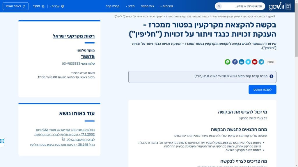 הטופס שייך לקטגוריות: יחידות ממשלתיות, רשות מקרקעי ישראל