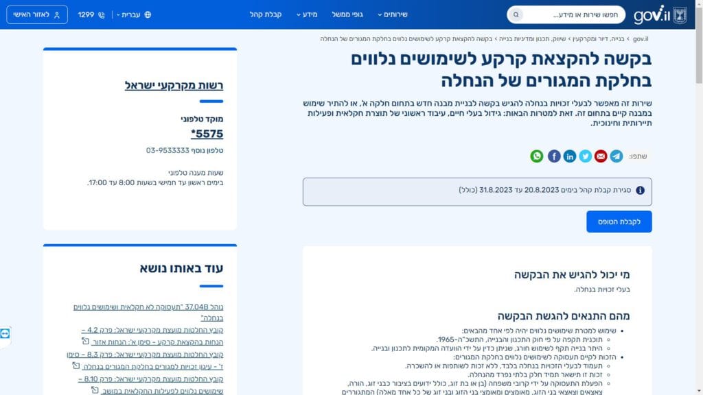 גוף שיתמוך בשאלות על טופס בקשה להקצאת קרקע לשימושים נלווים בחלקת המגורים של הנחלה