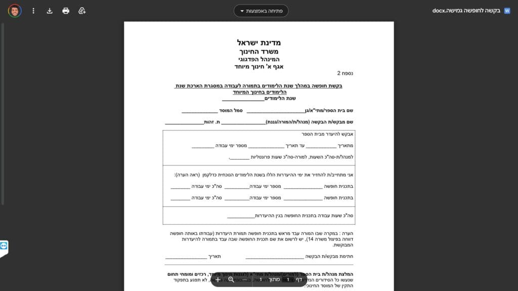 טופס בקשה לחופשה גמישה חלופה נגישה - כרגע לא קיימת.