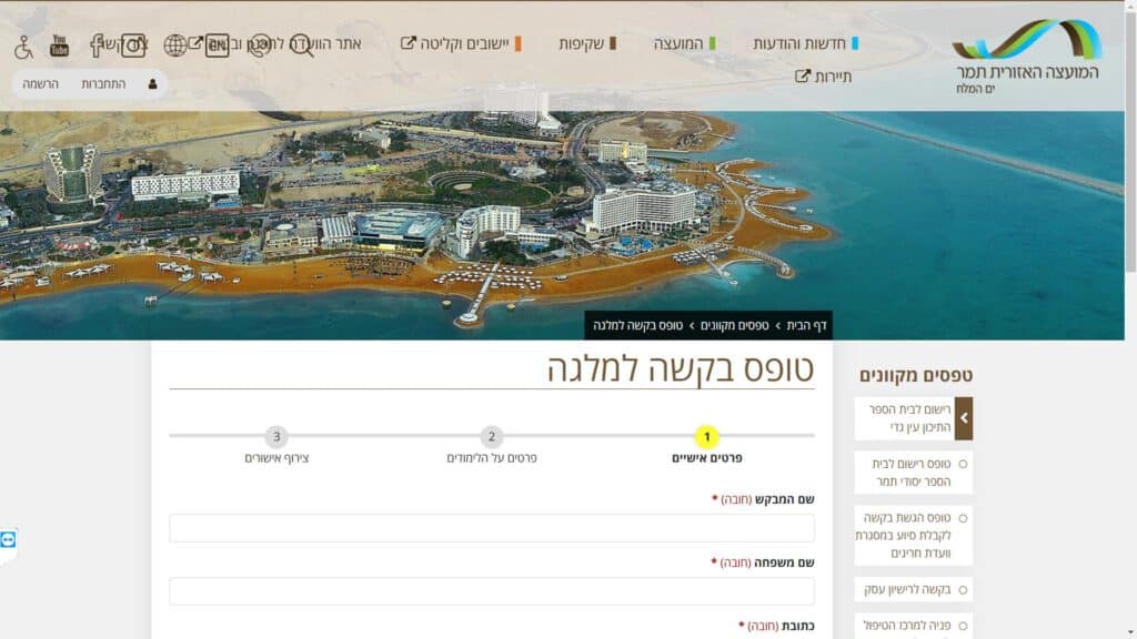 צילום מסך טופס בקשה למלגה טופס מקוון