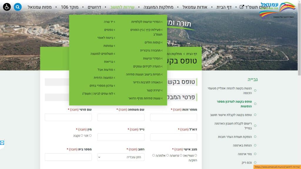 טופס קל » עיריות » עיריות ביהודה ושומרון » מועצה מקומית עמנואל » טופס בקשה לעדכון מספר הנפשות
