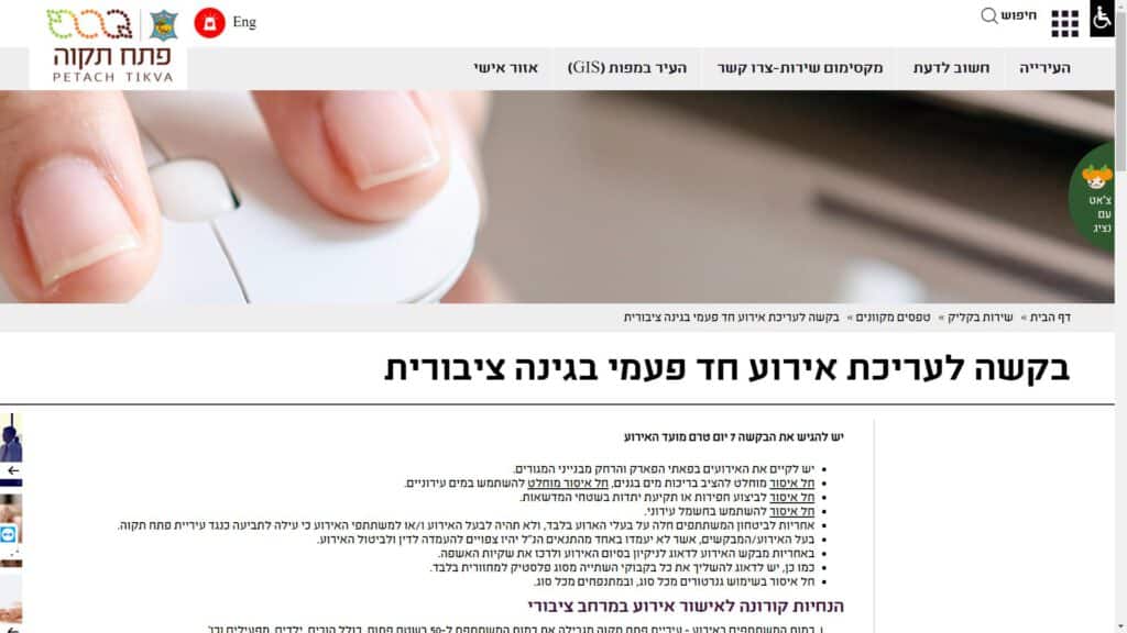 צילום מסך טופס בקשה לעריכת אירוע חד פעמי בגינה ציבורית טופס מקוון