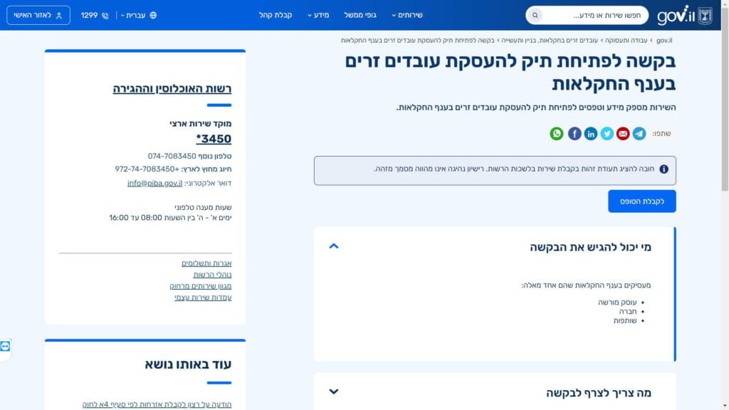 שם הטופס: בקשה לפתיחת תיק להעסקת עובדים זרים בענף החקלאות.