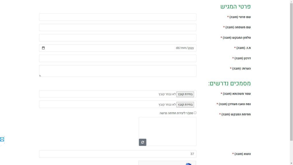 טופס בקשה לקבלת אישור לרישום משכנתא - מקוון חלופה נגישה - כרגע לא קיימת.