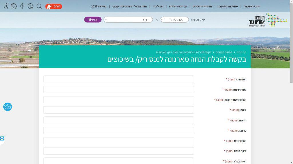 טופס בקשה לקבלת הנחה מארנונה לנכס ריק / בשיפוצים חלופה נגישה - כרגע לא קיימת.