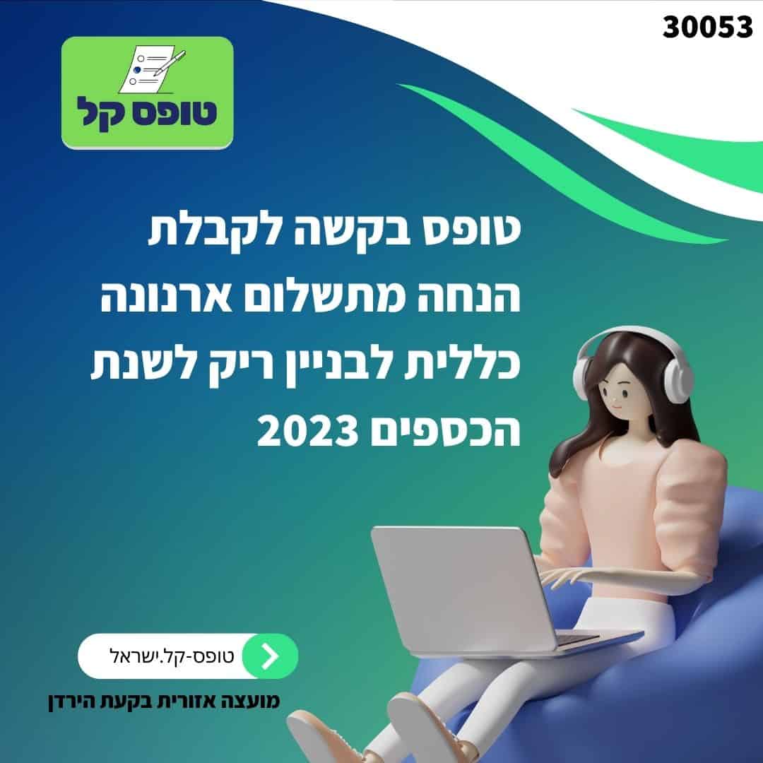 צילום מסך טופס בקשה לקבלת הנחה מתשלום ארנונה כללית לבניין ריק לשנת הכספים 2023 טופס מקוון