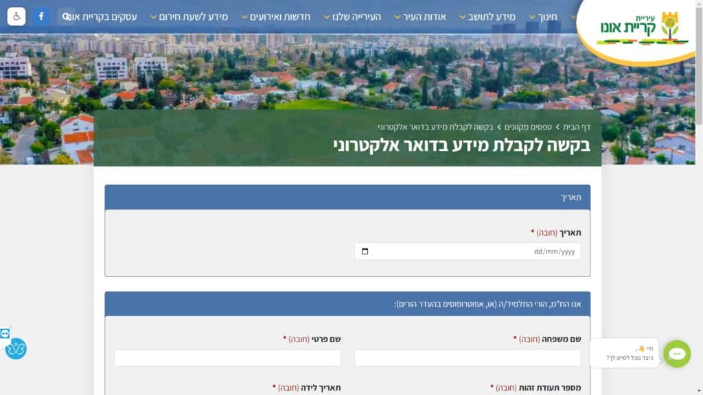 טופס בקשה לקבלת מידע בדואר אלקטרוני חלופה נגישה - כרגע לא קיימת.