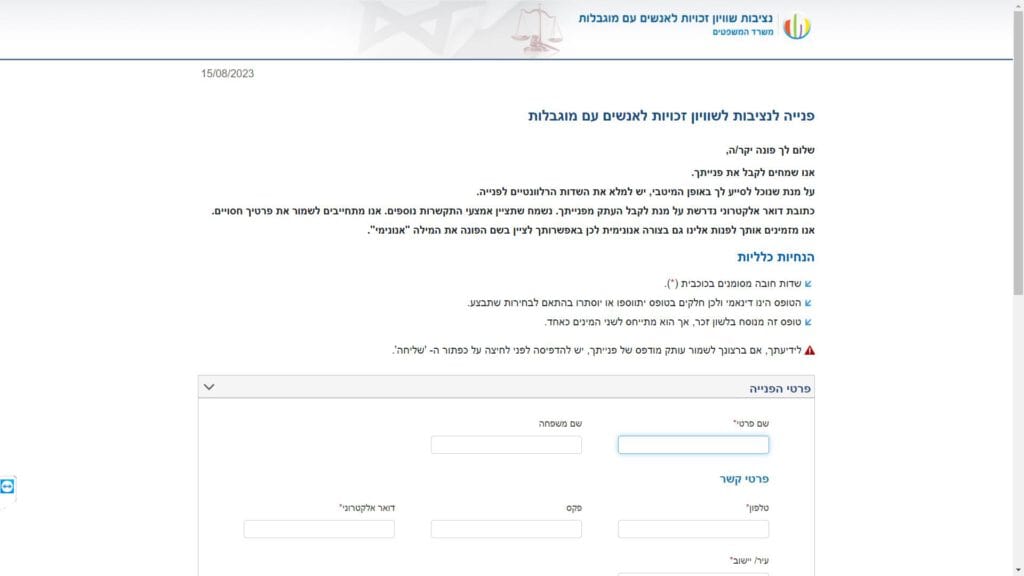 גוף שיתמוך בשאלות על טופס בקשה לקבלת מידע וייעוץ בנושא שוויון זכויות לאנשים עם מוגבלות