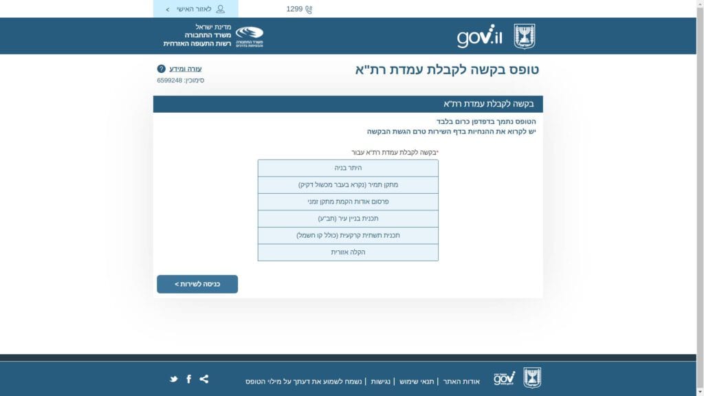 צילום מסך טופס בקשה לקבלת עמדת רשות התעופה האזרחית בנושא הקלה אזורית טופס מקוון