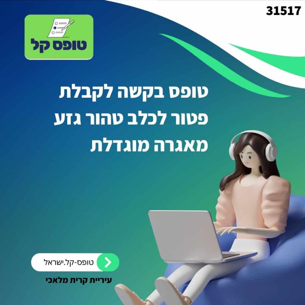 טופס בקשה לקבלת פטור לכלב טהור גזע מאגרה מוגדלת בעיריית קרית מלאכי: