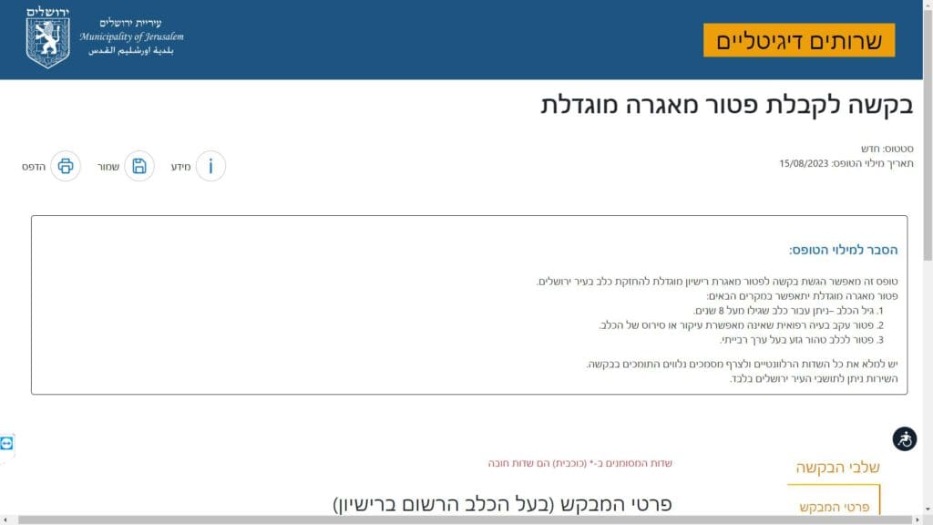 טופס קל » עיריות » עיריות בירושלים והסביבה » עיריית ירושלים » טופס בקשה לקבלת פטור מאגרה מוגדלת