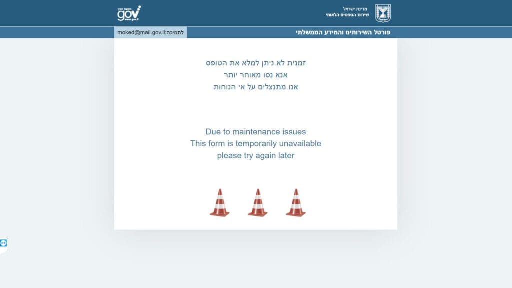 צילום מסך טופס בקשה לרישום במערך תחנות הקבע טופס מקוון