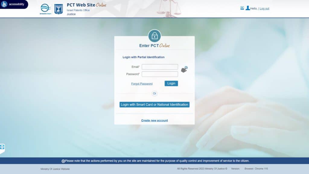 צילום מסך טופס בקשה לשינוי פרטים בטופס בקשה בינלאומית לרישום פטנט או בטופס דרישה לבחינה טופס מקוון
