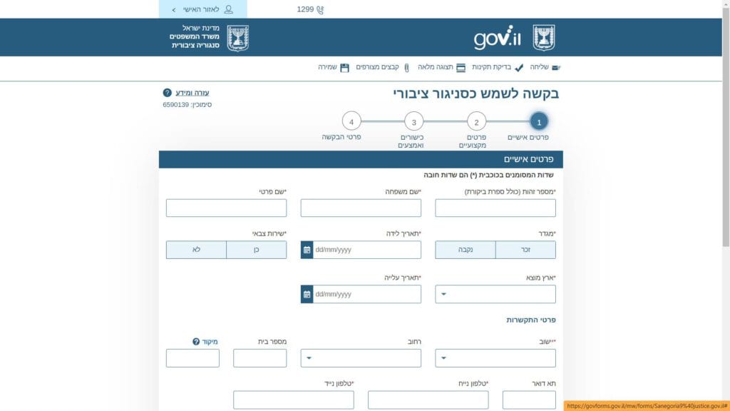 צילום מסך טופס בקשה לשמש סניגור ציבורי טופס מקוון